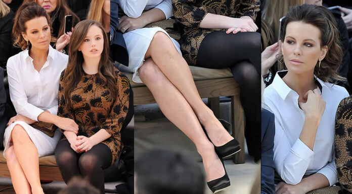 Kate Beckinsale in Crossed Legs at London Fashion Week Show