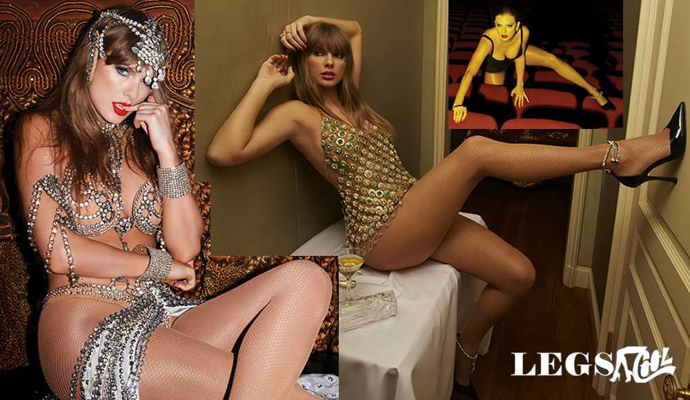 Taylor Swift perfect legs and fishnet tights – The Life of a Showgirl Photoshoot 2025